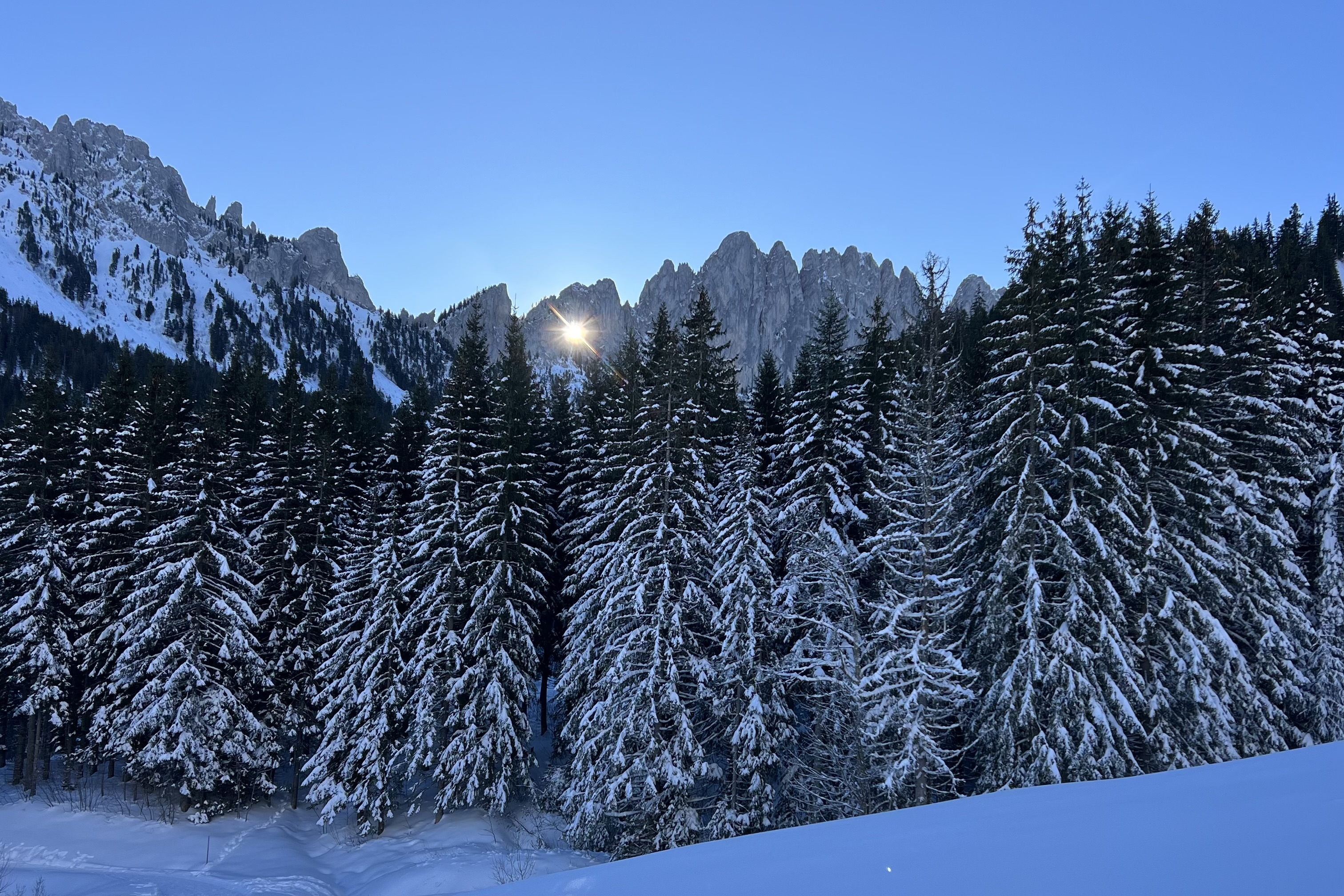 Details >Mit Schneeschuhen durch eine frisch verschneite Landschaft zu wandern, ist ein einzigartiges Wintererlebnis. Probiere es mit uns auf einer einfachen Halbtages-Tour mal aus.